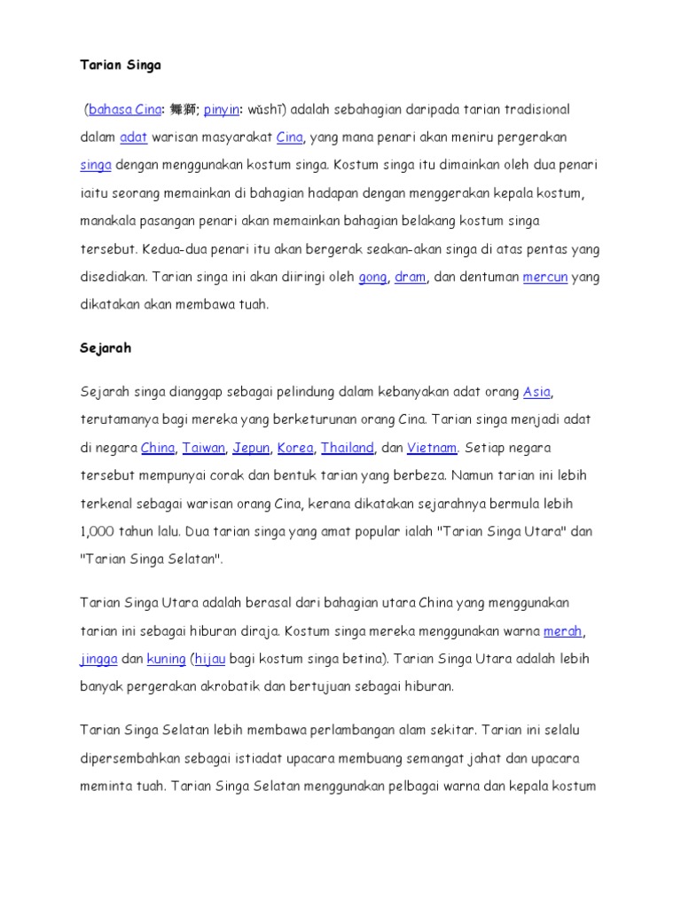 Namun, banyak dikenal orang berasal dari jakarta. By unknown sunday, 1 may 2016 kota dan budaya. Singa dianggap sebagai pelindung dalam masyarakat cina dan menjadi adat di negara china, taiwan, jepun, korea, thailand, malaysia dan vietnam. Tarian singa (舞狮, wǔshī) adalah tarian tradisi dalam kebudayaan cina dan kebudayaan kaum asia lain yang mana ia adalah tarian meniru pergerakan singa dengan memakai kostum sebagai pembawa tuah. Peristiwa ini kemudian dilaporkan ke r.