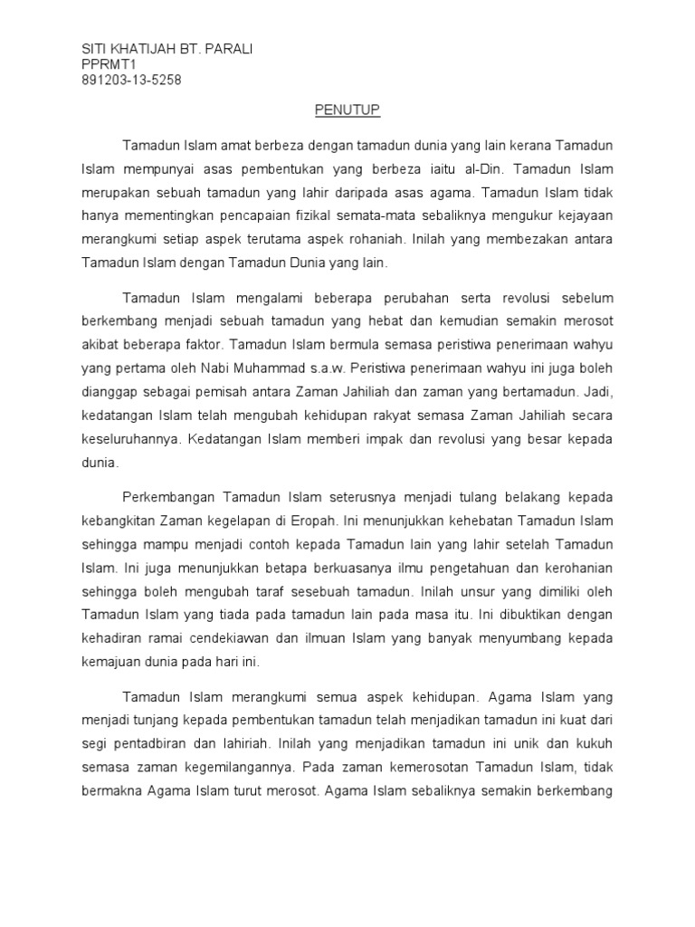 Penutup from imgv2-1-f.scribdassets.com Pengenalan tamadun islam merupakan satu tamadun yang paling unik. Baginda juga ingin mengelakkan penentangan yang memungkinkan asas islam itu dihancurkan. Tamadun islam reefear eapear anak ajang shahril redzwan bin shamsudin. Sasaran utama adalah pelajar titas 1. Dalam proses pembentukan tamadun jepun ini, kematian. So although there may be violent muslims, islam itself promotes a very peaceful practice and a loving and forgiving god. Get the knowledge you need in order to pass your classes and more. Cameron highland pasar malam cara bayaran balik ptptn cara baiki tv tiada gambar cantuman baji pokok durian cara balut hadiah kreatif cara banyakkan susu badan yang kering cara bayar saman dbkl calon pm ke 8.