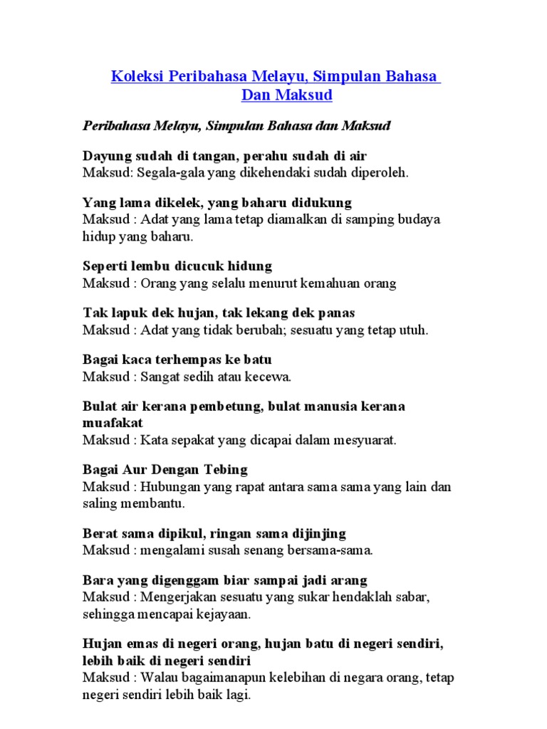 Related : Peribahasa Melayu Dan Maksud - Koleksi Peribahasa Perumpamaan Dan Simpulan Bahasa Serta Maksud - Simpulan bahasa merupakan ungkapan yang telah mantap dan mempunyai maksud yang khusus..